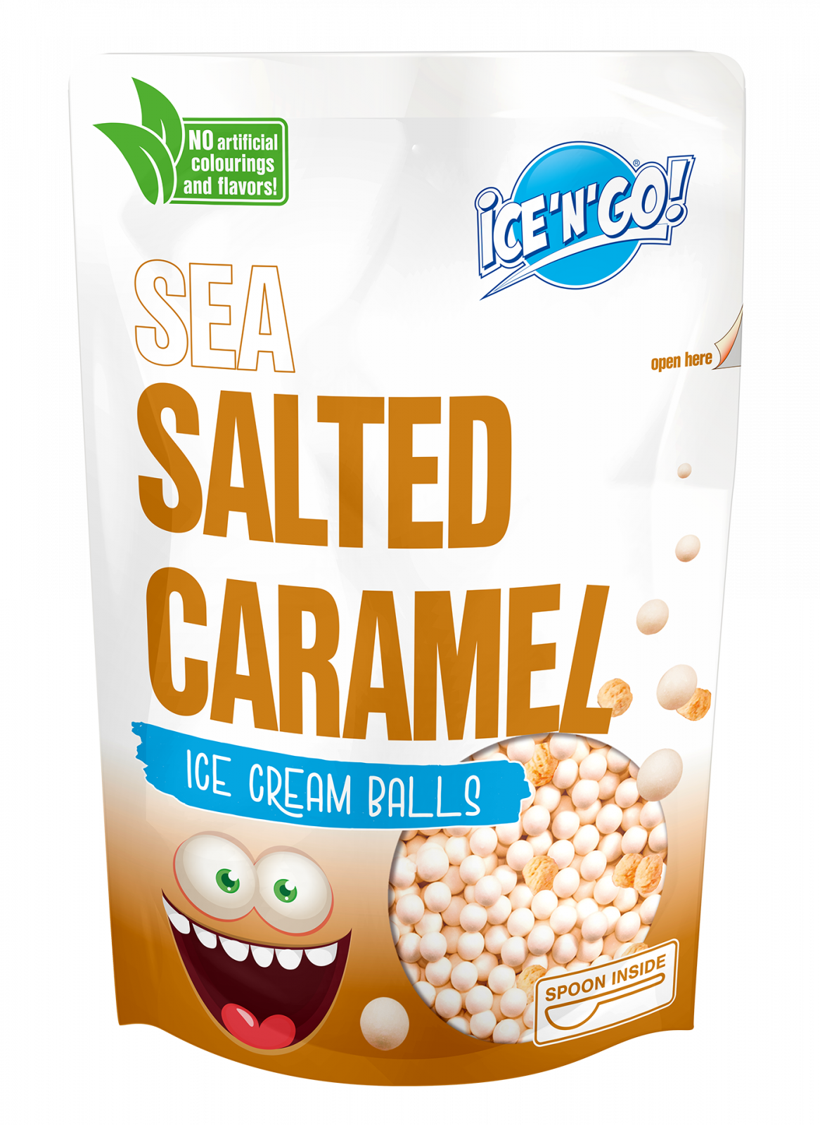 Înghețată caramel intensă, mătăsoasă, cu bile crocante și sărate. Oferă o experiență de neuitat atât pentru copii, cât și pentru adulți.