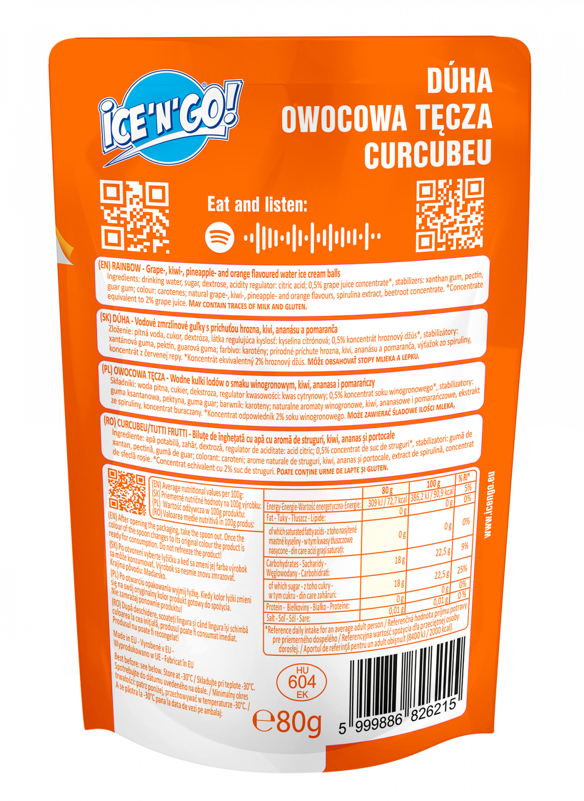 AVERTIZARE! Produsul se livreaza in pachet cu gheata carbonica. Din motive de siguranță, vă rugăm să citiți instrucțiunile de siguranță anexate. Produsul este destinat consumului imediat (sau dacă răcirea cu gheața carbonică furnizată este eficientă) și nu este potrivit pentru depozitare într-un congelator de acasă, deoarece necesită o temperatură de -30 °C și mai mică.